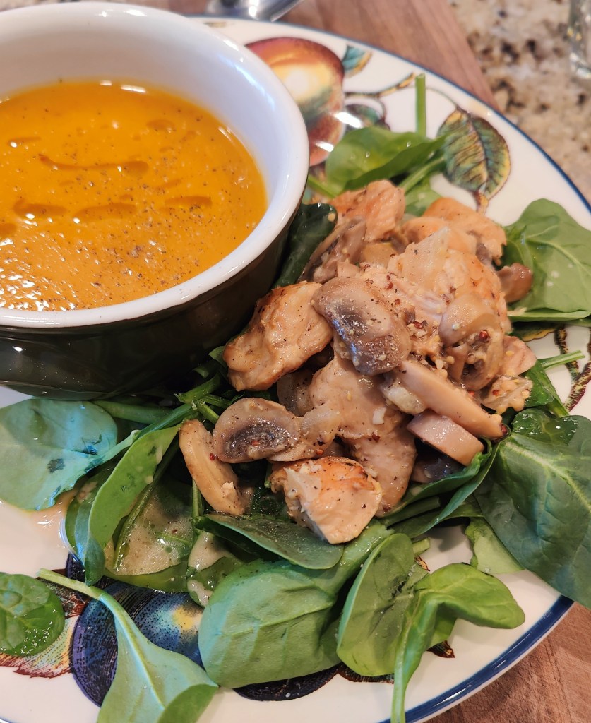 You can put the stroganoff over spinach like I did, which was drizzled with olive oil or you can put over cauliflower rice. 🙂