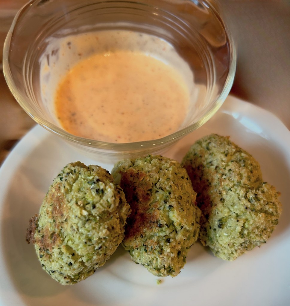 Oh my this was such an amazing simple side or appetizer to throw together! I had cauliflower and broccoli I needed to use up before going bad. You also could use zucchini or yellow squash for this recipe as well. I love to try and make simple dishes with what I have in the fridge. All you need for the recipe is a food processor or blender to mix all the ingredients together. Anyone can make this simple guilt free recipe. Low carb, keto and clean eating. I paired these veggie tots to go with scrambled eggs and bacon. I dipped the veggie tots in ranch dressing mixed with sriracha. You could also do olive oil, squeeze of a lemon, drizzle of balsamic vinegar and sprinkle S&P for another great dipping sauce idea.